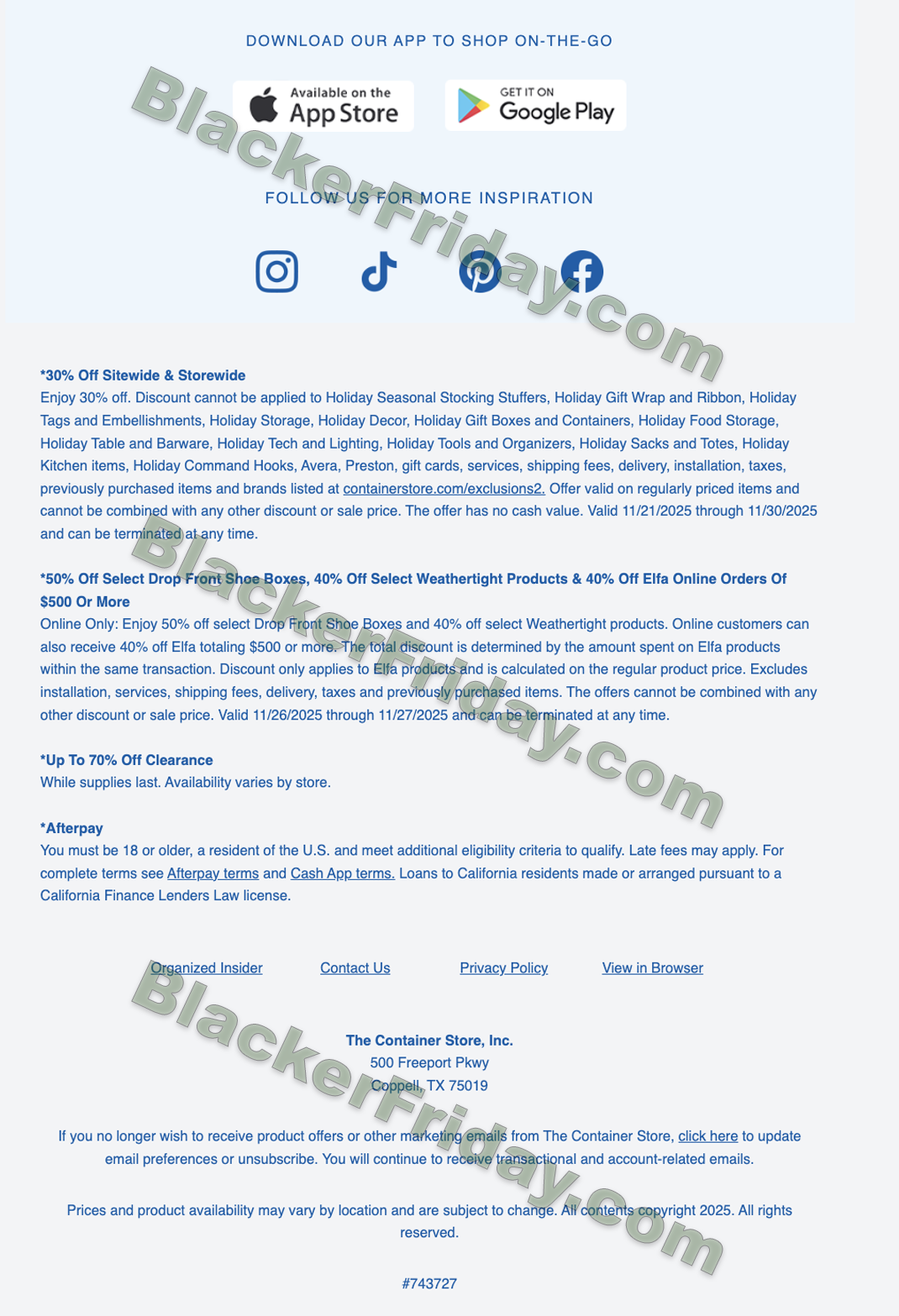 Are you interested in seeing some of The Container Store’s older Black Friday ads? Then follow the links below to view the last few years of ad history.
