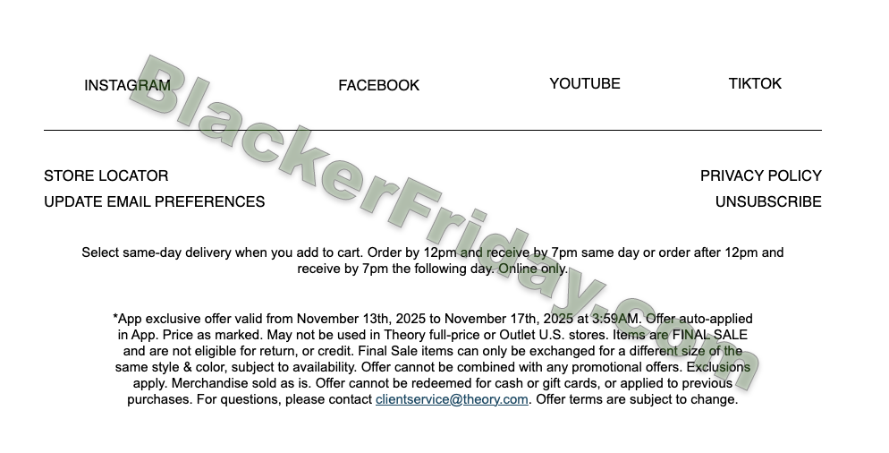 Theory’s Black Friday 2025 Early Access Ad & Terms
