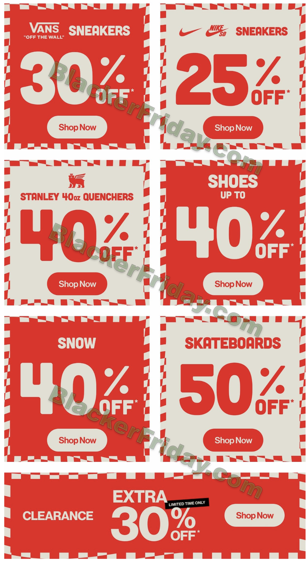 - Snow skateboards at 40% off, skateboards at 50% off.