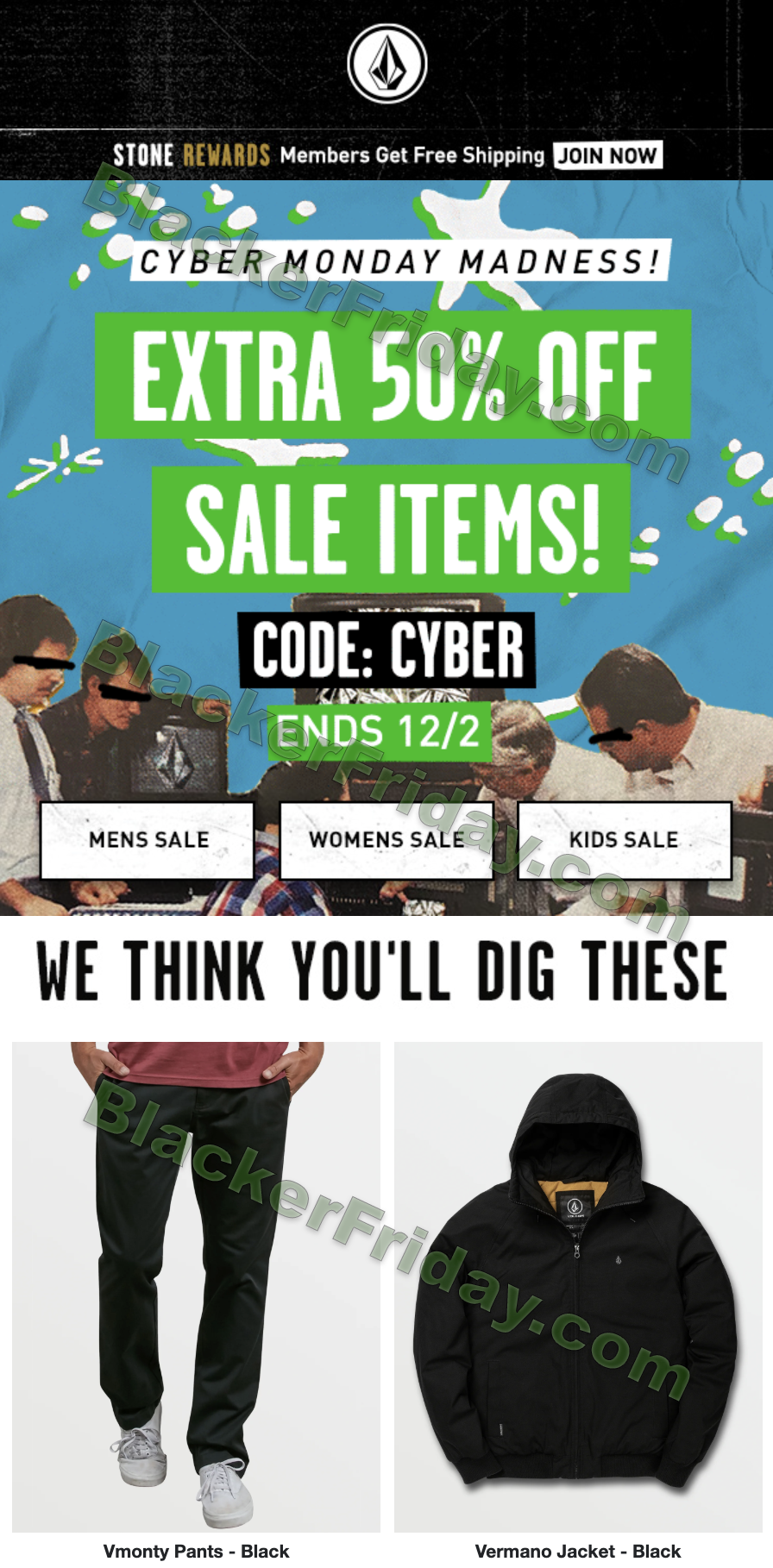 Volcom’s Cyber Monday sales have followed a consistent these last few years. Eligible items from the “Sale Collection” are expected to once again receive an extra 50 % off with promo code (in past years the code has been “CYBER”).