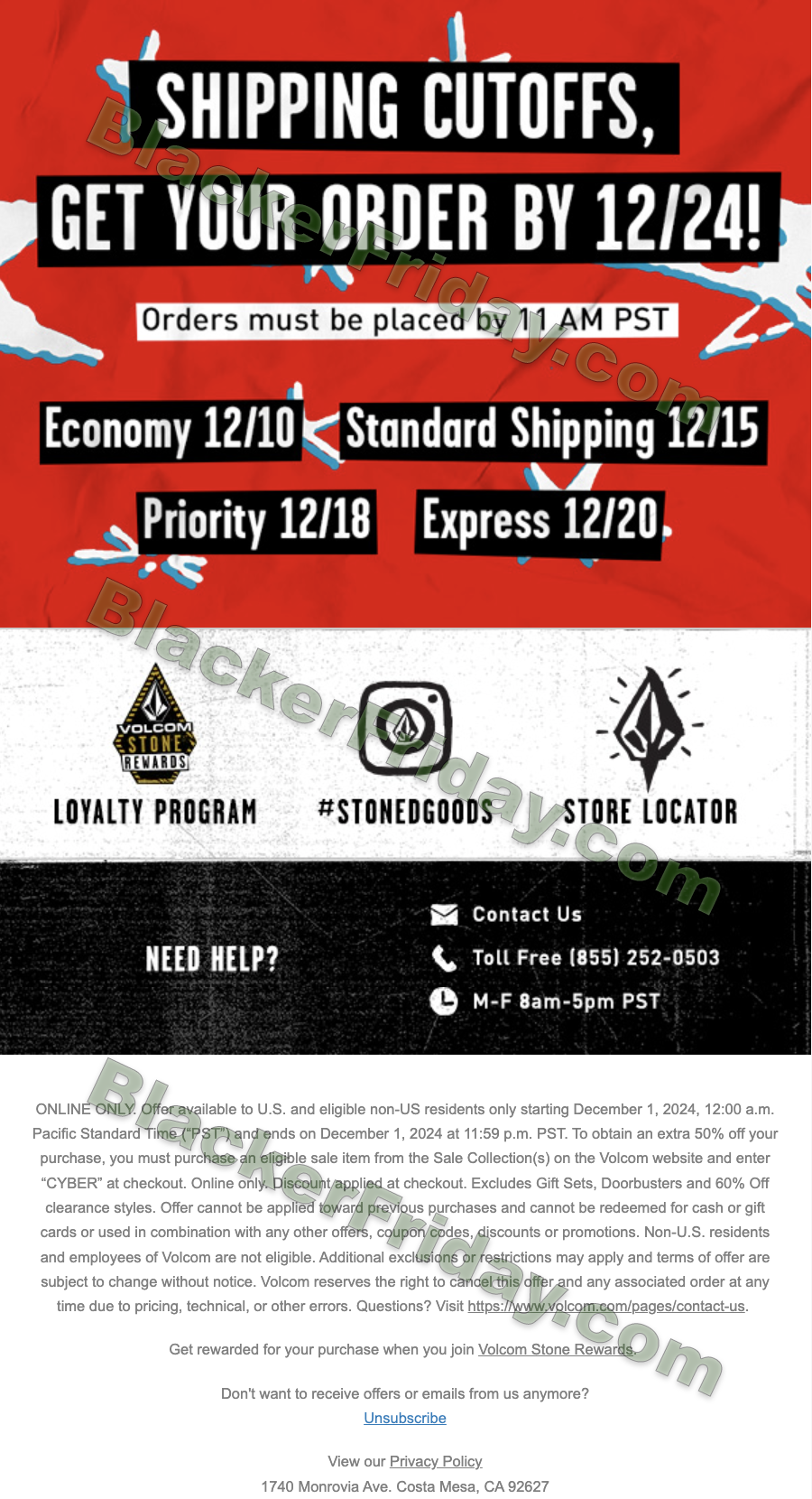 We’ve built an archive of Volcom’s previous Cyber Monday ads over the years. You can take a look and compare this year’s deals to those from the last few years by following the links below.