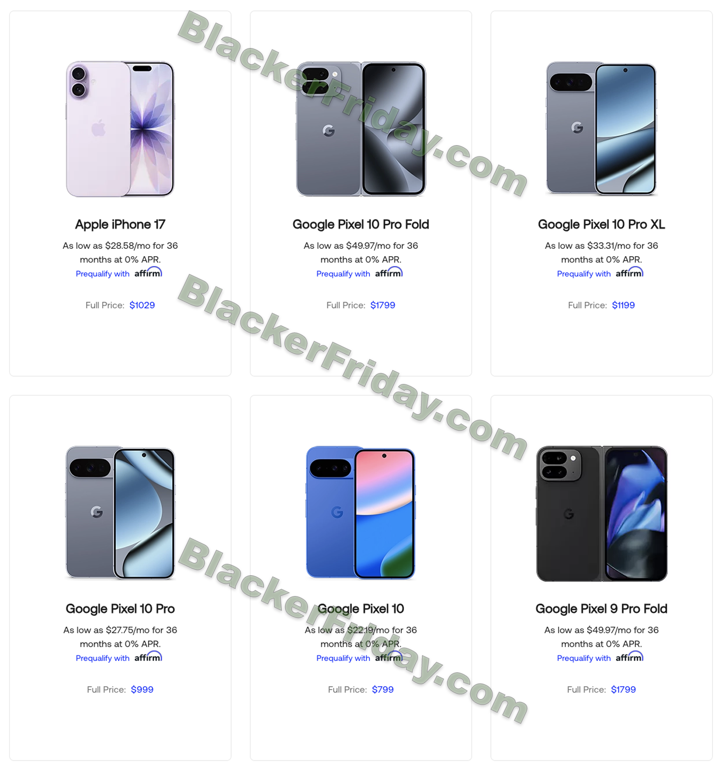 | Google Pixel 10 Pro XL | $33.31/mo for 36 months at 0% APR |