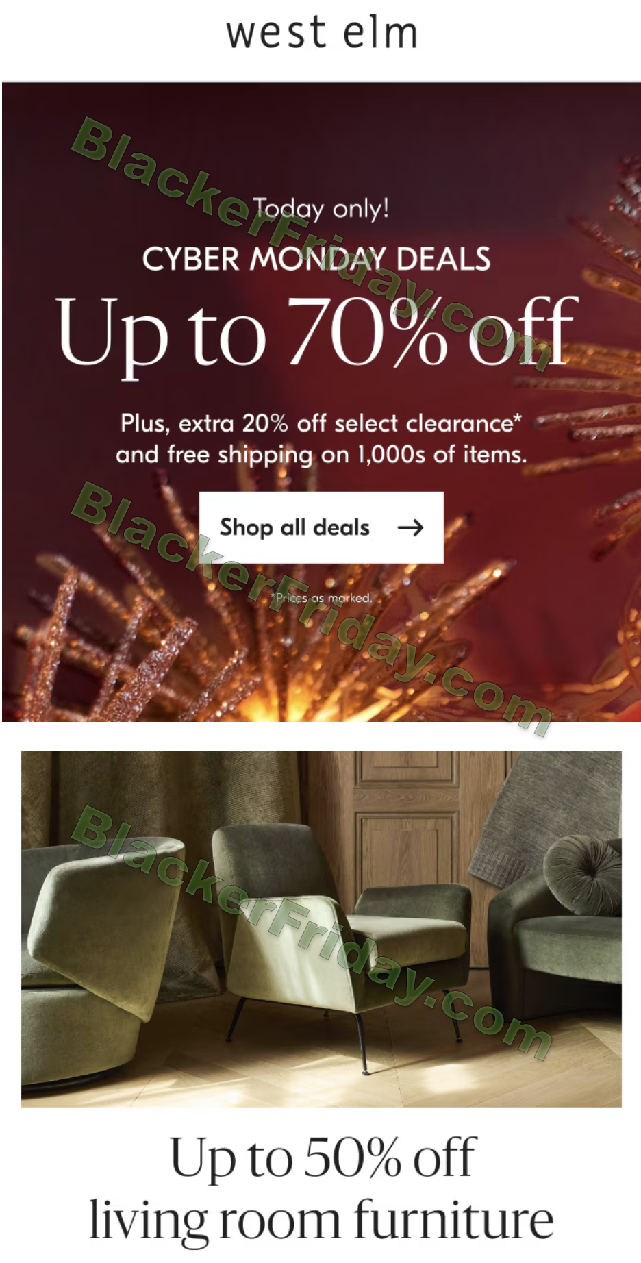 We’ve built an archive of West Elm’s previous Cyber Monday ads over the years that we’ve been tracking their sales. You can take a look and compare this year’s deals to those from the last few years by following the links below.