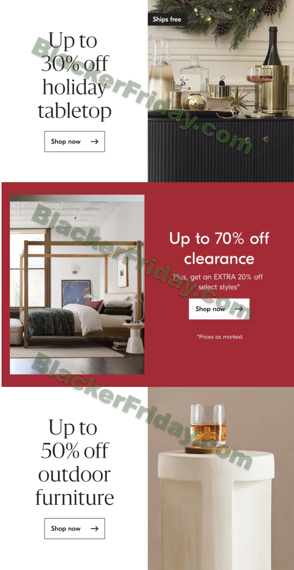 - Holiday tabletop: up to ~30% off